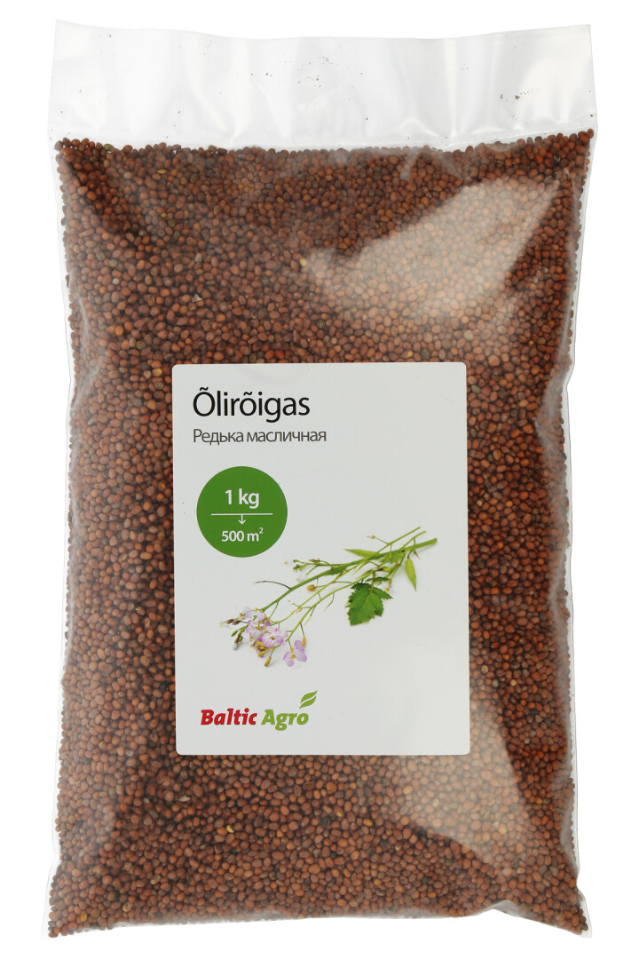 Oilseed radish is a fast-growing, non-wintering cruciferous. An excellent catch crop. With the strongest taproot of the cruciferous family. Thanks to its strong root system, oilseed radish effectively binds nutrients and water from deeper soil layers, improving soil structure and moisture regime. Thanks to its fast growth, it suppresses weeds. Contains glucosinolates. Reduces soil pathogens. When oilseed radish is plowed in, the quantity and quality of organic matter in the soil increases. It is also used as a fodder plant in the hunting areas to provide the feed.