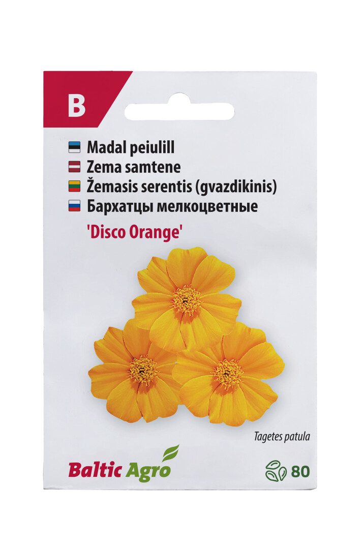 | Полное название | BALTIC AGRO Бархатцы мелкоцветные 'Disco Orange' 80 семян 1pcs |