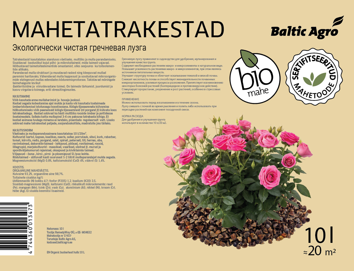 | Полное название | BALTIC AGRO Гречневая лузга 10l |