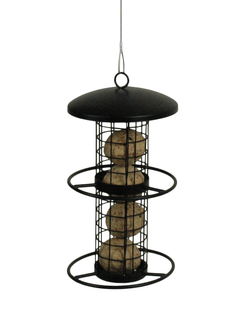 Кормушка для птиц для жировых шариков легко открывается и наполняется.