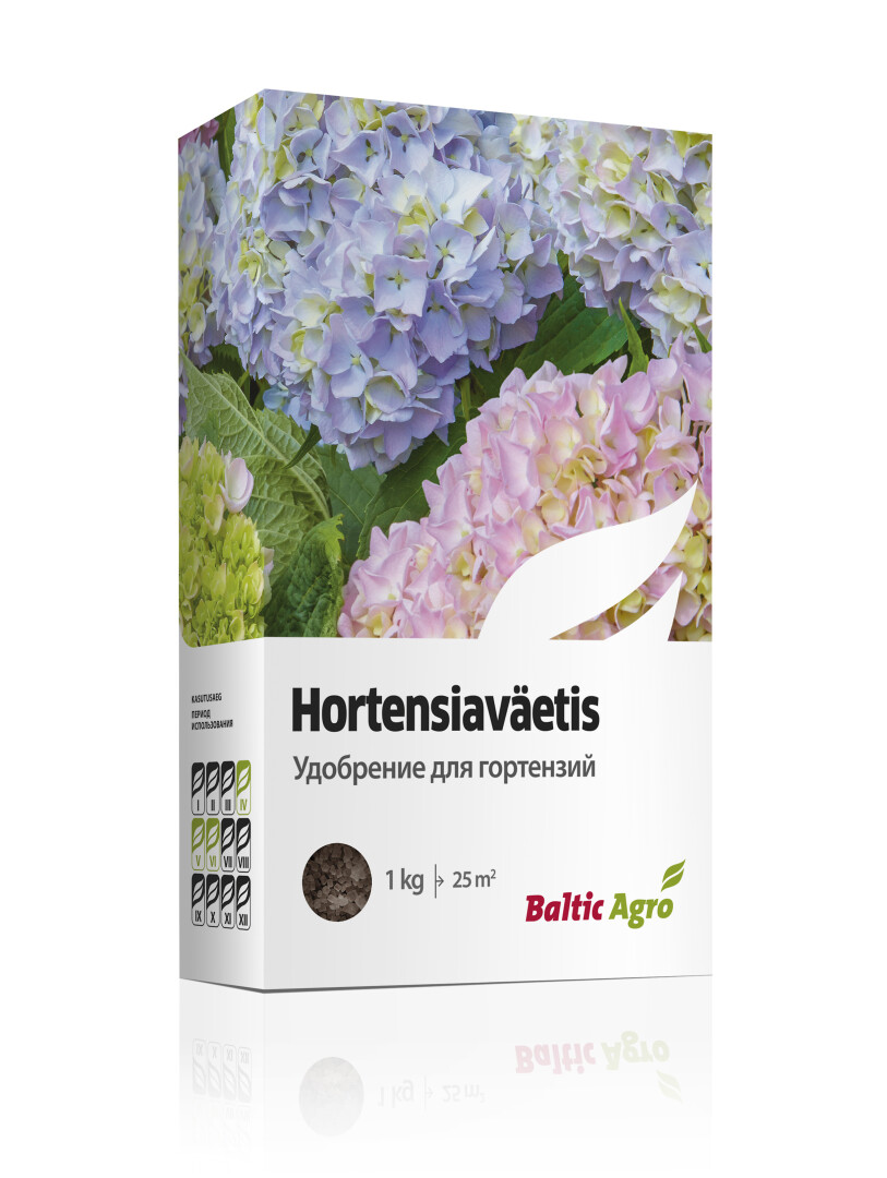 Hortensiaväetis on mikroelemente sisaldav kvaliteetne täisväetis sobib kõikide hortensialiikide väetamiseks. Lämmastik tugevdab lehtede intensiivset rohelist värvust, samuti parandab taime lopsakat kasvu. Väetises sisalduv kaalium soodustab suurte õisikute moodustamist ning tagab ka õisikute pikema püsivuse põõsal. Fosfor suurendab taimede vastupidavust põua, läbikülmumise ja haiguste suhtes.