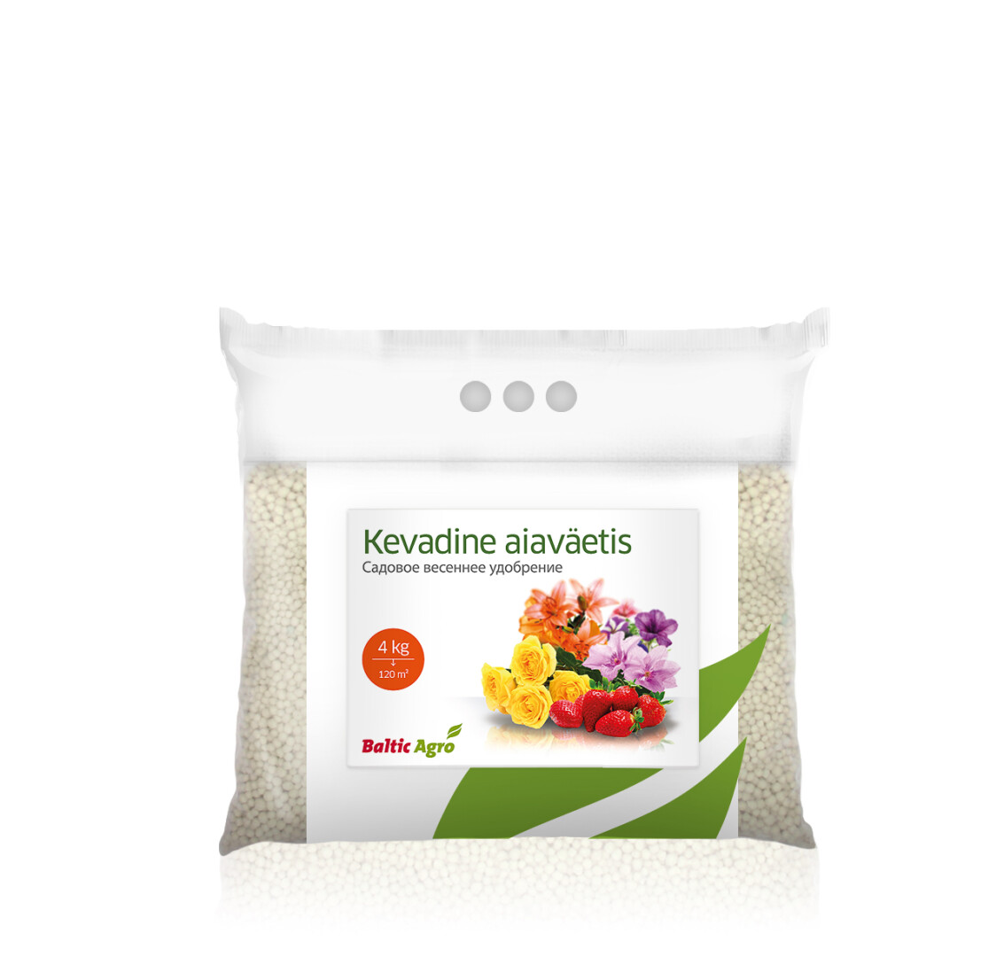 Kevadine aiaväetis sobib tomatite, kurkide, kartulite, maasikate, püsi- ja suvelillede, aia- ja põlluviljade, viljapuude, muru, rooside, okaspuude ja kõikide teiste õue- ja kasvuhoonetaimede väetamiseks. Sisaldab kõiki taimede kasvuks ja arenguks vajalikke toitaineid sobivas vahekorras. Väetise kasutamine tagab taimede hea kasvu, rikkaliku õitsemise ning kvaliteetse saagi!