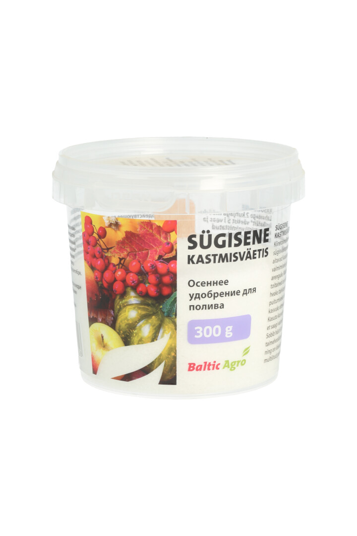 Kiiretoimeline veeslahustuv väetis sügisväetamiseks. Fosfor ja kaalium aitavad kaasa saagi kiiremale valmimisele ja juurestiku tugevale arengule. Väetises sisalduvad toitained on olulised taimede heaks talvitumiseks, võrsete puitumiseks ning järgmise aasta kasvuks ettevalmistumisel. Kasuta kasvuhoones/avamaal, et saagi valmimist kiirendada. Sobib hästi istutusjärgseks taimehoolduseks aastaringselt ning on ideaalne kastmisväetis multšitud peenardesse.
