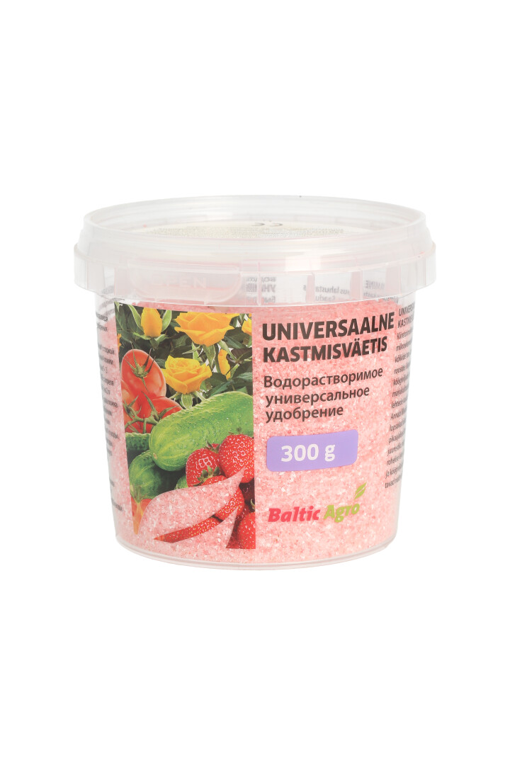 Valmistage kastmislahus lahustades vastav kogus väetist vees. Saadud lahusega kastke taimi. KÕIK AIATAIMED: 2 kuhjaga mõõdulusikatäit* 5 l veele üks kord nädalas või 4 kuhjaga mõõdulusikatäit 5 l veele 1–2 nädala tagant kastes. TOATAIMED: Üks kord nädalas aprillist augustini – 1 kuhjaga mõõdulusikatäis 2 l veele. Talvel kord kuus – 1 kuhjaga mõõdulusikatäis 2 l veele. Lehtede kaudu väetamisel 1% lahusega: 5 kuhjaga mõõdulusikatäit 1 l veele. Pritsimisel vältida kuuma, päikesepaistelist ilma; pritsida pilves ilmaga, hommikul või õhtul. *Ämbris on mõõdulusikas. 1 kuhjaga mõõdulusikatäis väetist = 2 g. 300 g piisab 600 l veele.