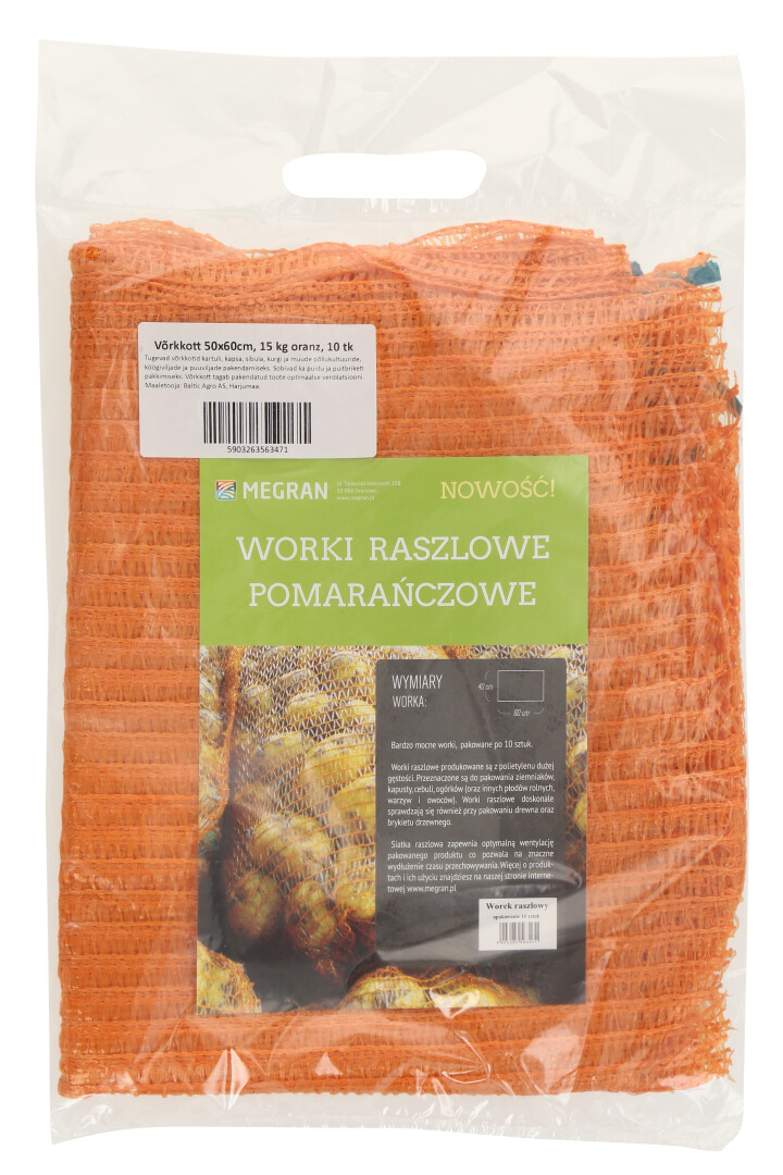 BALTIC AGRO Võrkkott 50x60cm, 15 kg oranz, 10 tk